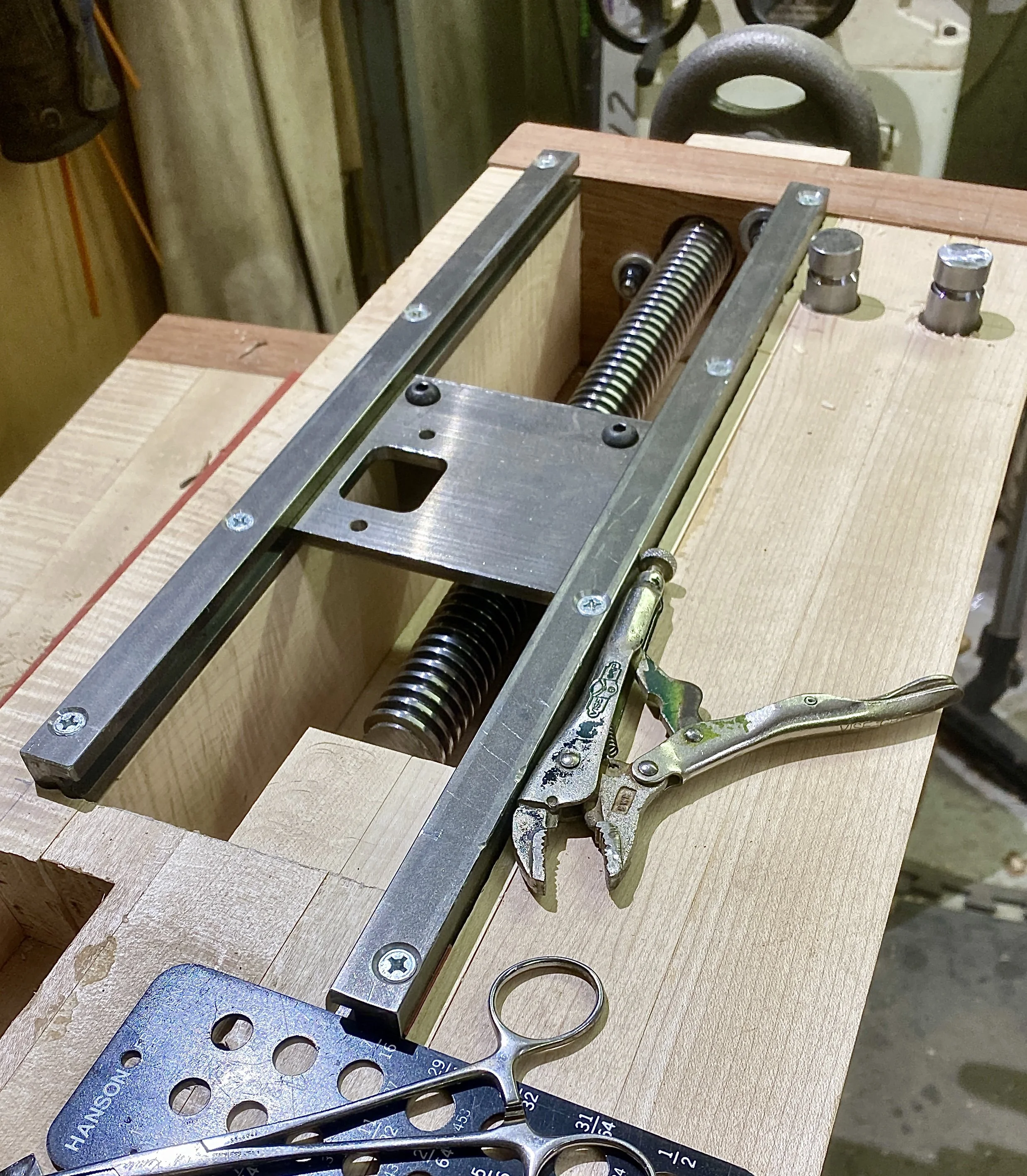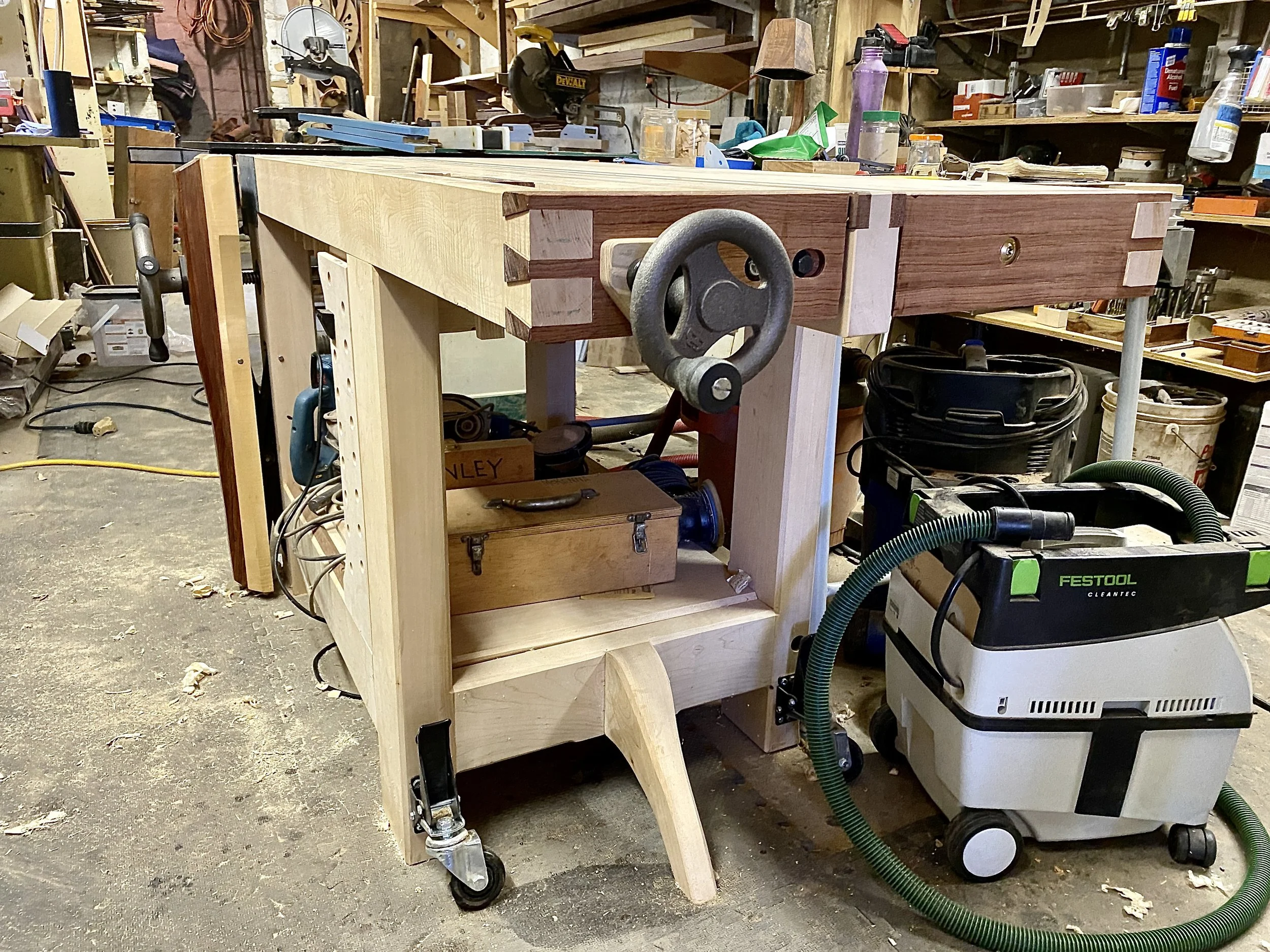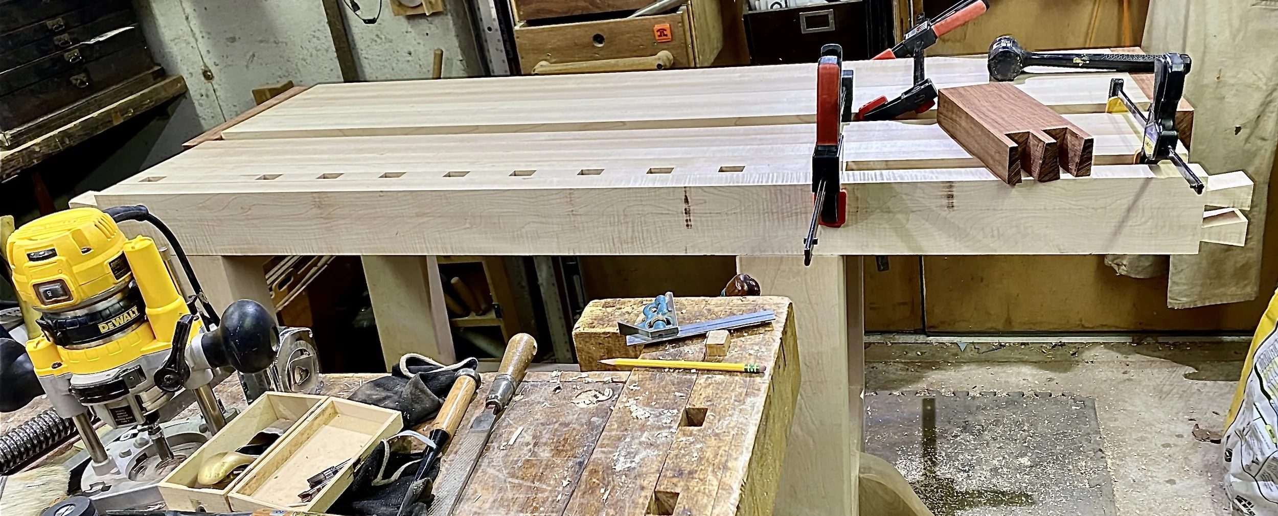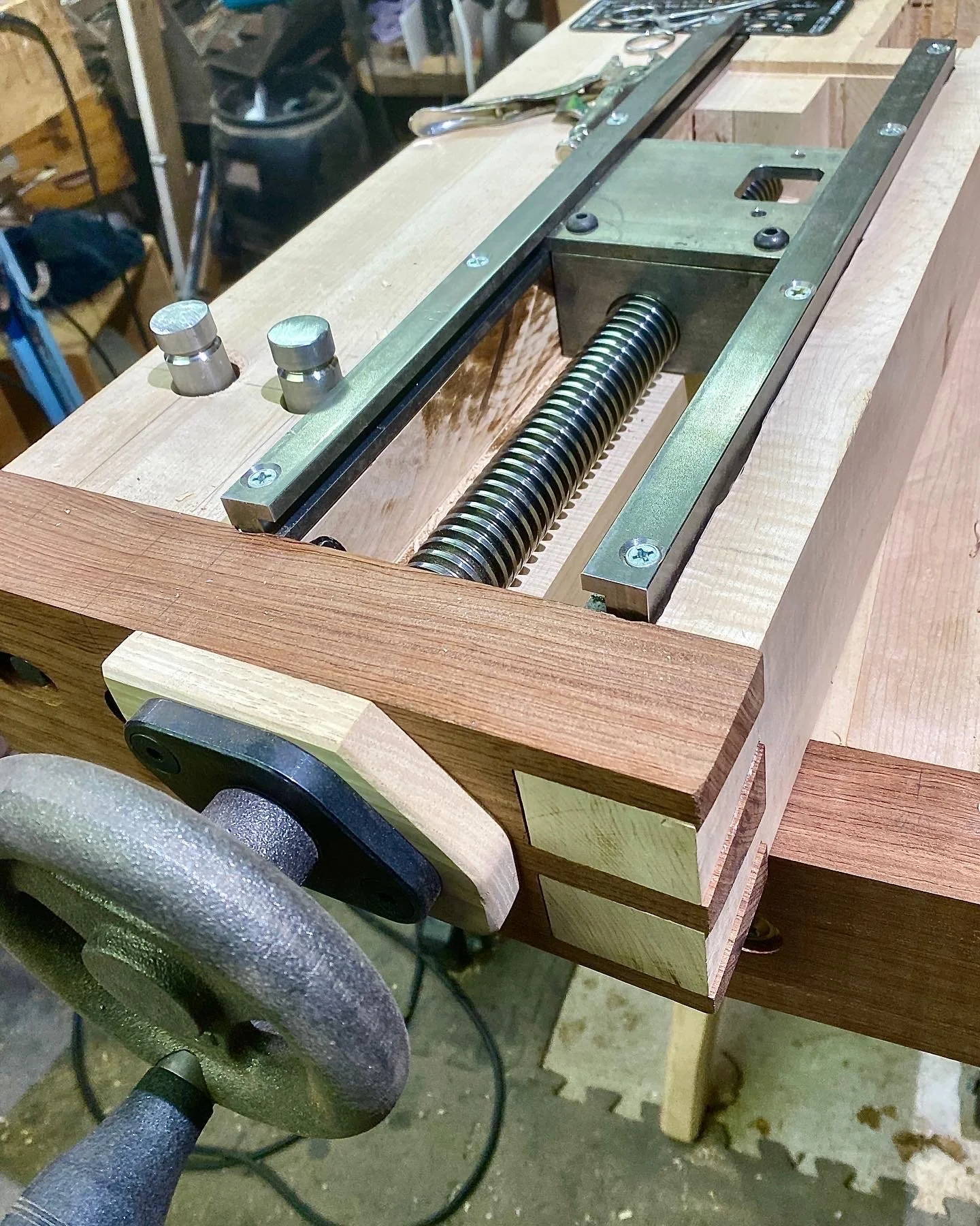 bench knocks down, 7” carriage bolts through legs thread into 1” barrel bolts in rails